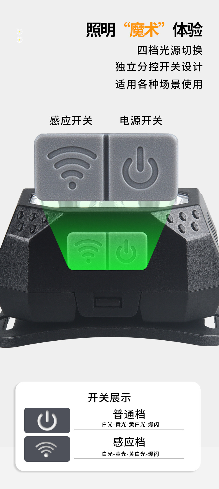 Intelligent Sensing Headlamp Strong Light Super Bright Yellow And White Led Dual Light Usb Charging Outdoor Night Running Riding Headwear Mine Light