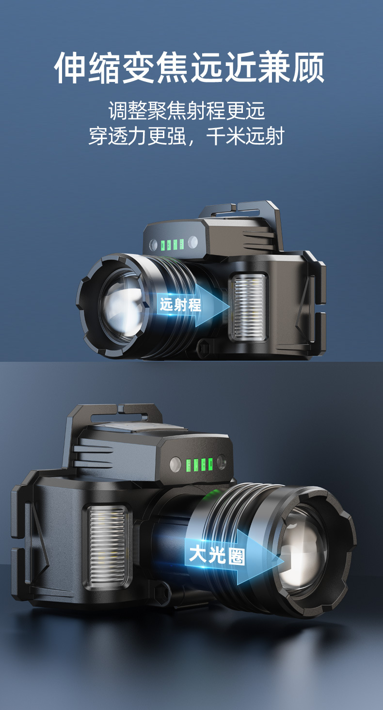Wholesale White Laser Strong Bald Head Lamp Charging Long Range High Light Long Life Zoom Multi-Functional Head Lamp